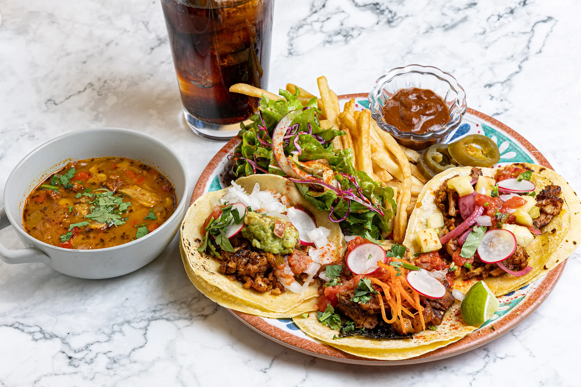 Enjoy tacos and other Mexican dishes in a variations.