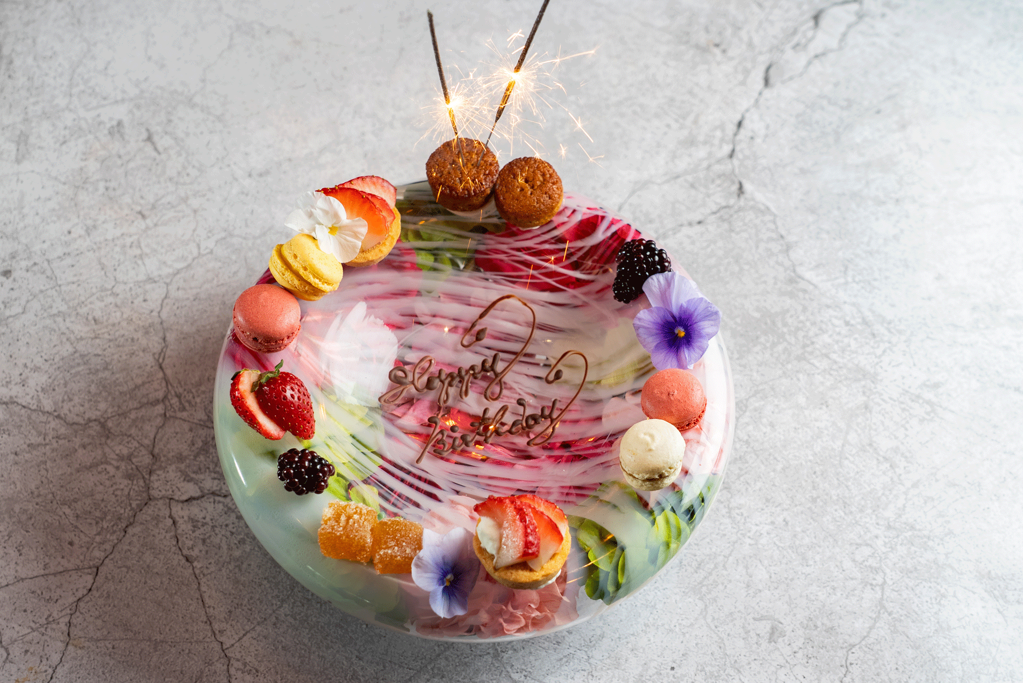 プチデザートの盛り合わせに花火とご希望のメッセージを添えて、お客様の思い出作りをお手伝いします。
