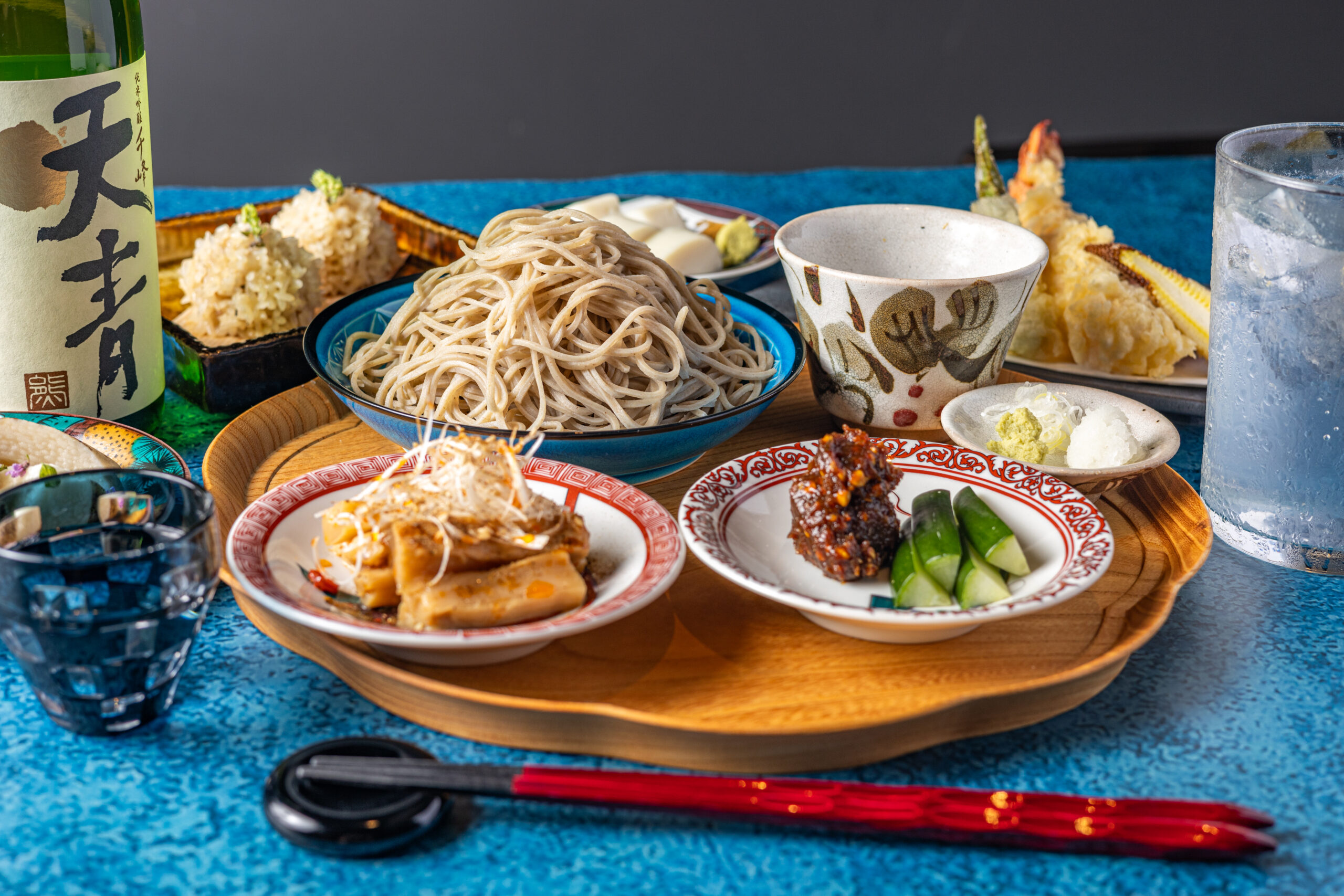 その時期に最良の蕎麦粉を使用し、店内で打ち上げる手打ち蕎麦をご提供。定番のざる蕎麦はもちろん、ぶっかけ蕎麦など、気軽に楽しめる多彩な蕎麦メニューを取り揃えています。全国各地から厳選し食材を使用した天ぷらや、「蕎麦前」として楽しめる一品料理も充実しております。