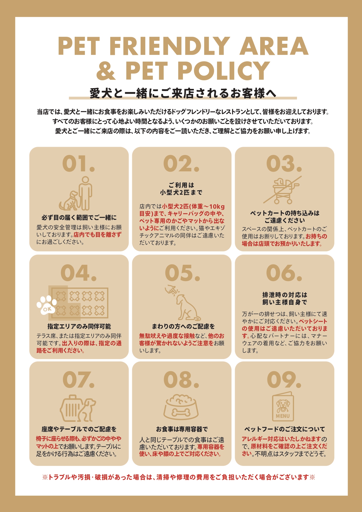 ◼︎店内一部ペットご案内可能エリアを設けている店舗/テラス席も有り