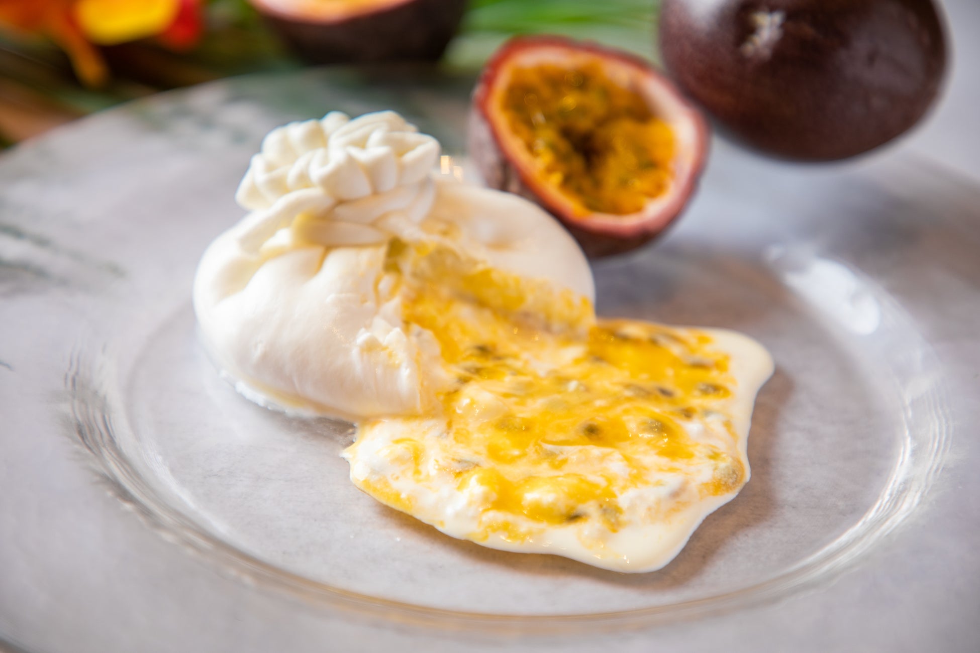 また、メディアでも多数取り上げられ、人気を博している「とろける旬果ブッラータ」シリーズから「とろけるパッションフルーツブッラータ」を店内でお楽しみいただけます。可愛らしい巾着型のブッラータチーズに南国の恵みパッションフルーツと自家製リリコイバターをとじこめた、NABUCCO自慢の一品です。