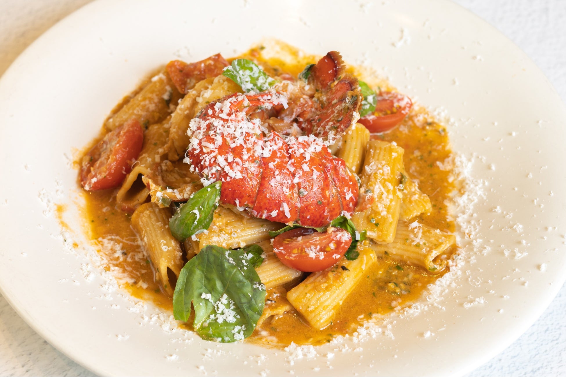 ▼オマール海老とフレッシュトマトのリガトーニ ペスト・トラパネーゼとバジル