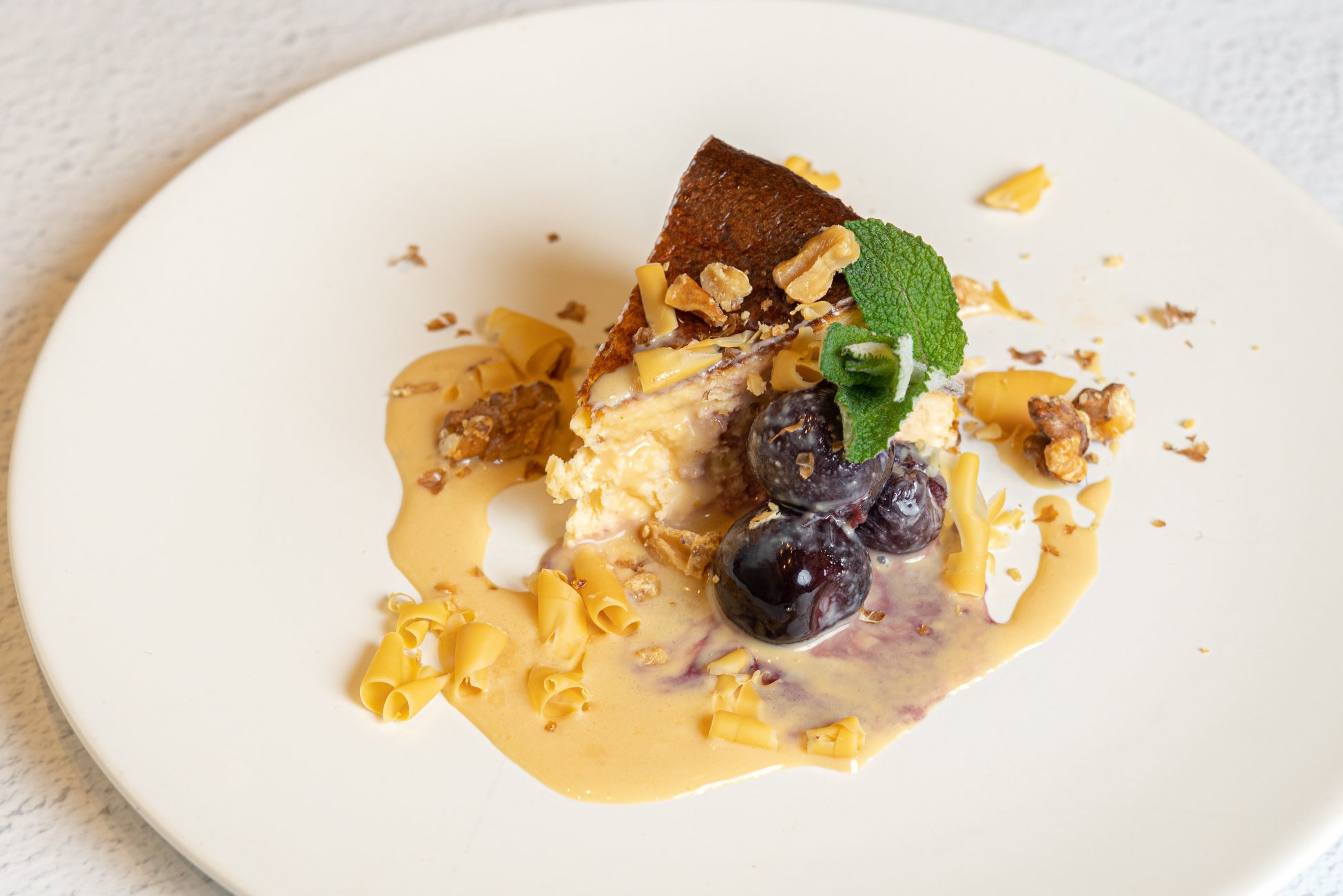 晝川シェフ渾身のソースに、甘さを控えたチーズケーキ、グリオットチェリーの酸味と甘みを足しながら、NABUCCOならではのマリアージュをお楽しみください。