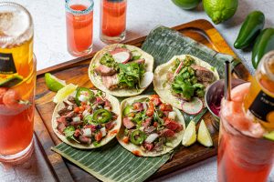 ▼黒毛和牛イチボのカルネ・アサダ・タコス サルサ・チポトレ・チェリー