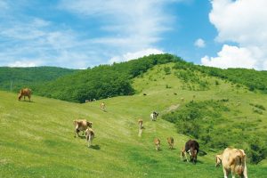 牛を一年中 広大な山に昼も夜も放牧し、エサは 太陽や月、雨など自然の力で育った野芝や木の葉。大自然の中でのんびりと過ごし、身も心も健康な牛のミルクは、爽やかでありながら、コクをしっかりと感じる豊かな味わいを堪能でき、メディアでも多数取り上げられています。