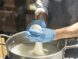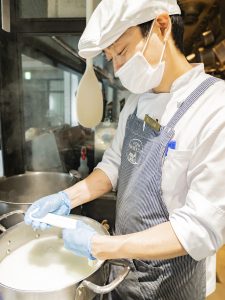 cucina del NABUCCOで提供している、旬果ブッラータを含めた全てのフレッシュチーズは、店内のチーズ工房でひとつひとつ丁寧にお作りしています。