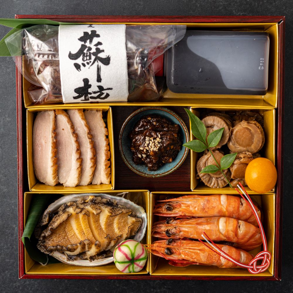 壱の重はお正月の定番の食材と、蘇枋で人気の蕎麦前を詰め合わせました。