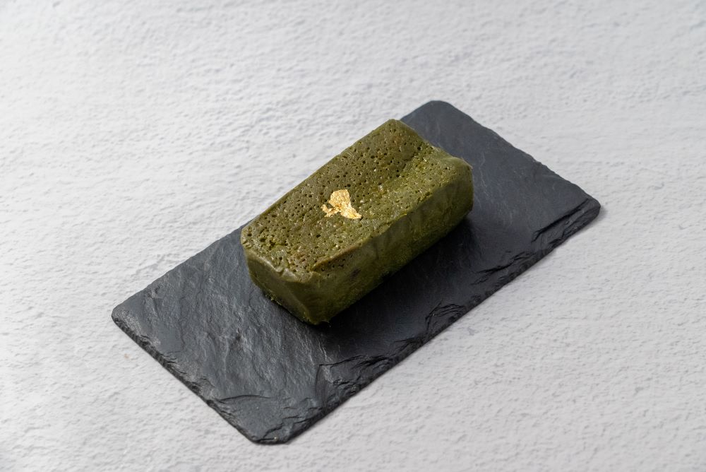 大粒かつ艶やかな丹波の黒豆を、丁寧に甘露煮にして濃抹茶のテリーヌに仕上げました。高級宇治抹茶をふんだんに使用した甘みと苦みのバランスが抜群です。チョコレートはコロンビアの自社農園で香り豊かなカカオを製造する「CHOCOLATE BANK」のホワイトチョコレートを使用。ナチュラルカカオバターで作られたクーベルチュールは、口溶けが良く、マイルドなカカオの風味を感じられます。