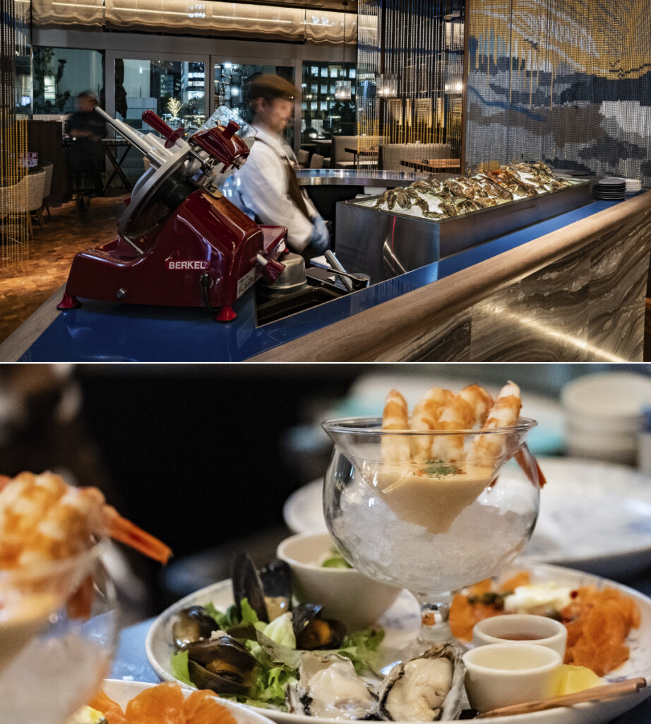 店内のRAW BARに並ぶ、世界各地から選りすぐった海老・カニなどのシーフードもスパークリングワイン「カヴァ」にぴったり!シーフードを盛り合わせたシーフードプラッターや、大人気の「ブラウンクラブ」もご用意しております。そのほかにも、The GRILL自慢のグリル料理と合わせて、自由にフリーフローをお楽しみいただけます。