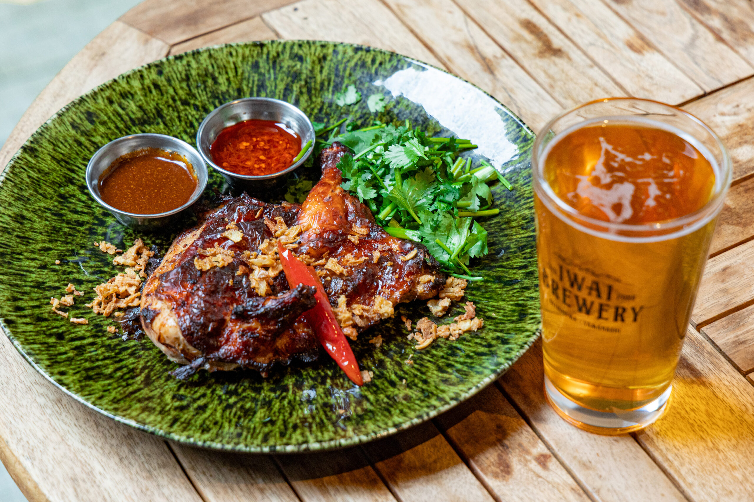 イワイ シラントロエールは東京・横浜の4店舗のアジアンレストランで、生ビールでお楽しみいただけます。定番のグリーンカレーやガパオライスはもちろん、ハーブと野菜たっぷりのバインセオ(ベトナム風お好み焼き)や、タイ風ローストチキン”ガイヤーン”など、スパイスやパクチーをたっぷり使った料理と合わせて味わうのがおすすめです!