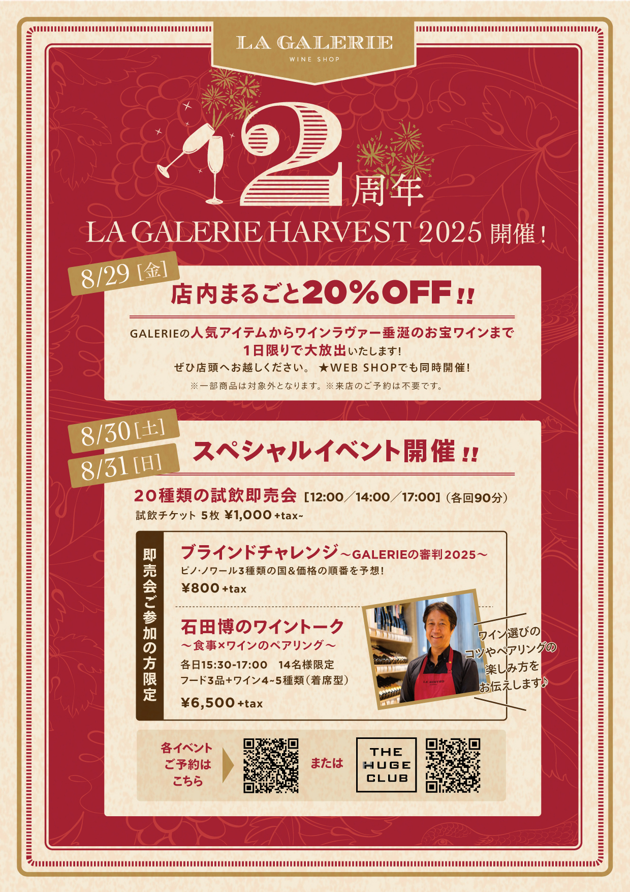 LA GALERIE HARVEST 2025 2周年イベント 石田博によるワインセミナー & 試飲即売会プラン