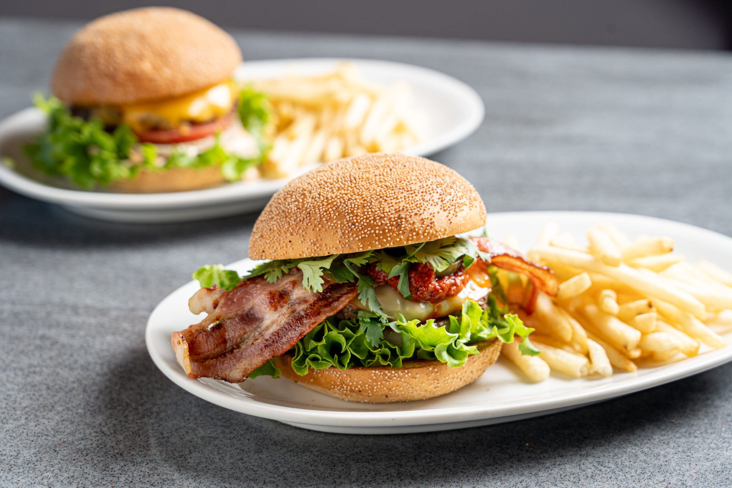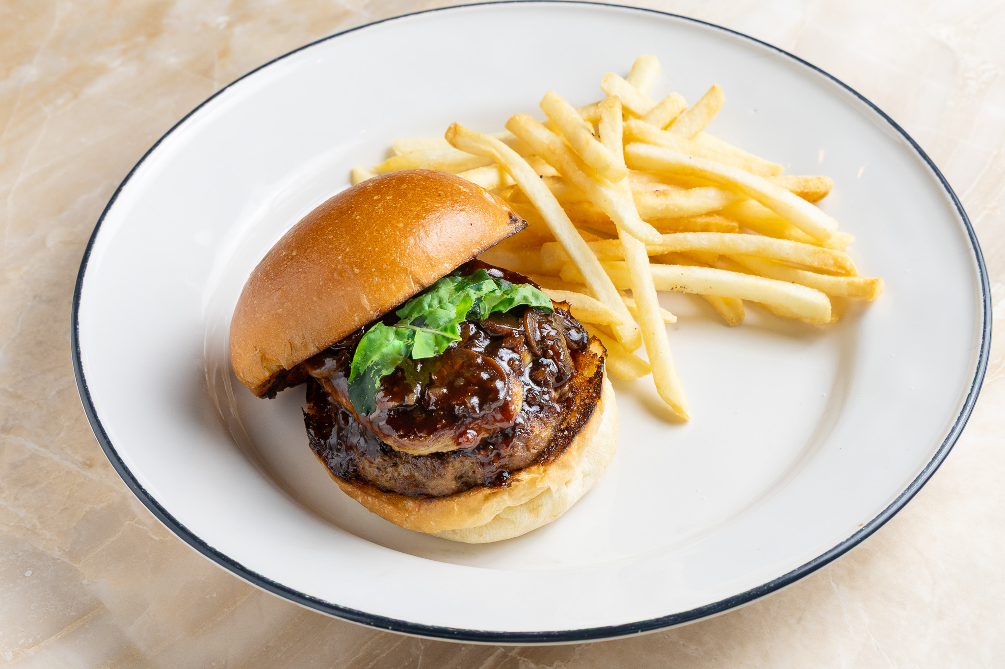 有田牧場から届く上質な黒毛和牛とやまと豚をバランスよく合挽きにしたパティに、贅沢な厚切りフォアグラのソテーを贅沢に挟みました。トリュフの芳香が閉じ込められたペリグーソースをたっぷり絡めたリッチな味わい。 かぶりついた瞬間、口中でほとばしる黒毛和牛とフォアグラ、トリュフの旨みはまさに極上です!