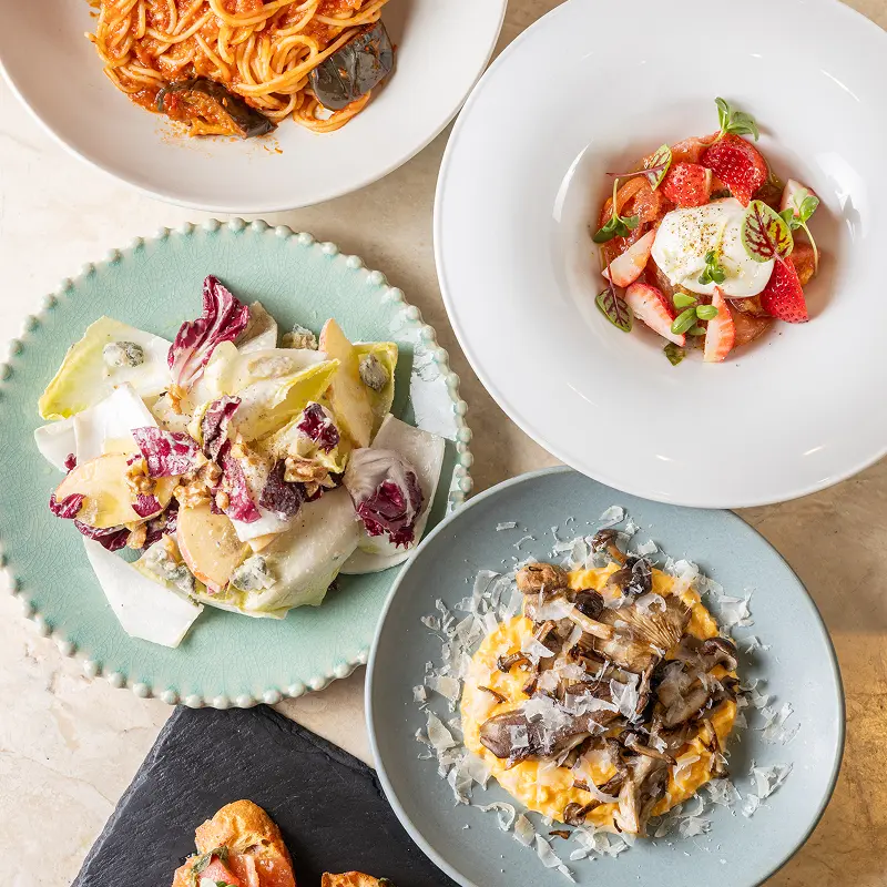 ベジタリアンメニューの提供・開発に力を入れています。植物由来の食材を積極的に使用することは、動物性食品の生産に比べて温室効果ガスの排出を抑え、水や土地といった貴重な資源の保全にもつながります。こうした食の選択は、環境への負荷を減らすだけでなく、や豊かな色の選択肢を広げ、健康的なライフスタイルの実現にも貢献すると私たちは考えています。季節の野菜や豆類、穀物などを用いた、見た目にも美しく満足感のある料理を通じて、身体にも地球にもやさしい「おいしいサステナビリティ」をご提供いたします。