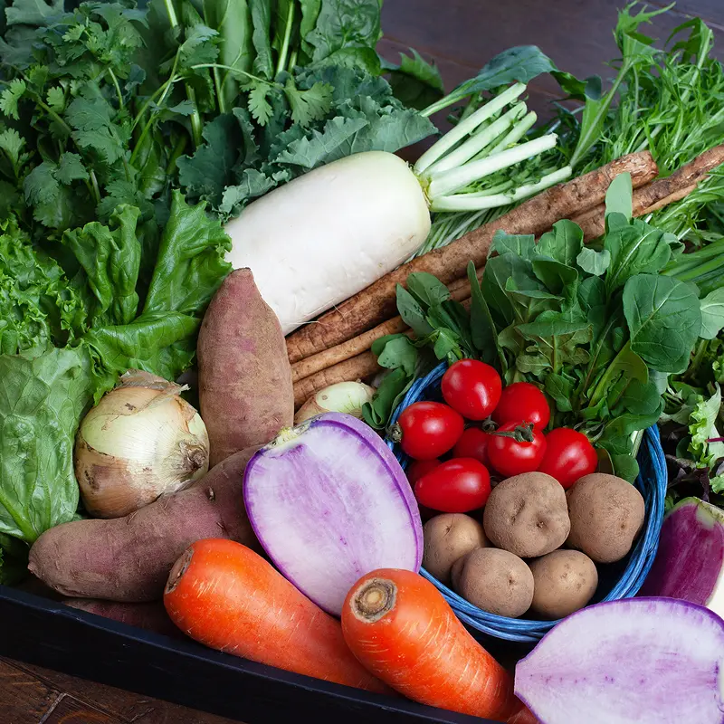 当社では、持続可能な食材調達の実現を目指し、社内に市場での買参権を持つ「青果部」を設置。店舗で使用する野菜や果物の仕入れを一括で管理しています。現在、産地直送で生産者から直接買い付けている青果は全体の51%を超えており、生産者とのフェアで継続的な関係性を築いています。さらに、鮮魚についても北部市場での買い付けに加え、漁師からの直接仕入れも実施。仲介業者を極力介さない責任ある調達によって、食材の鮮度・品質・透明性を確保し、地域と共に持続可能な食の循環を支えています。